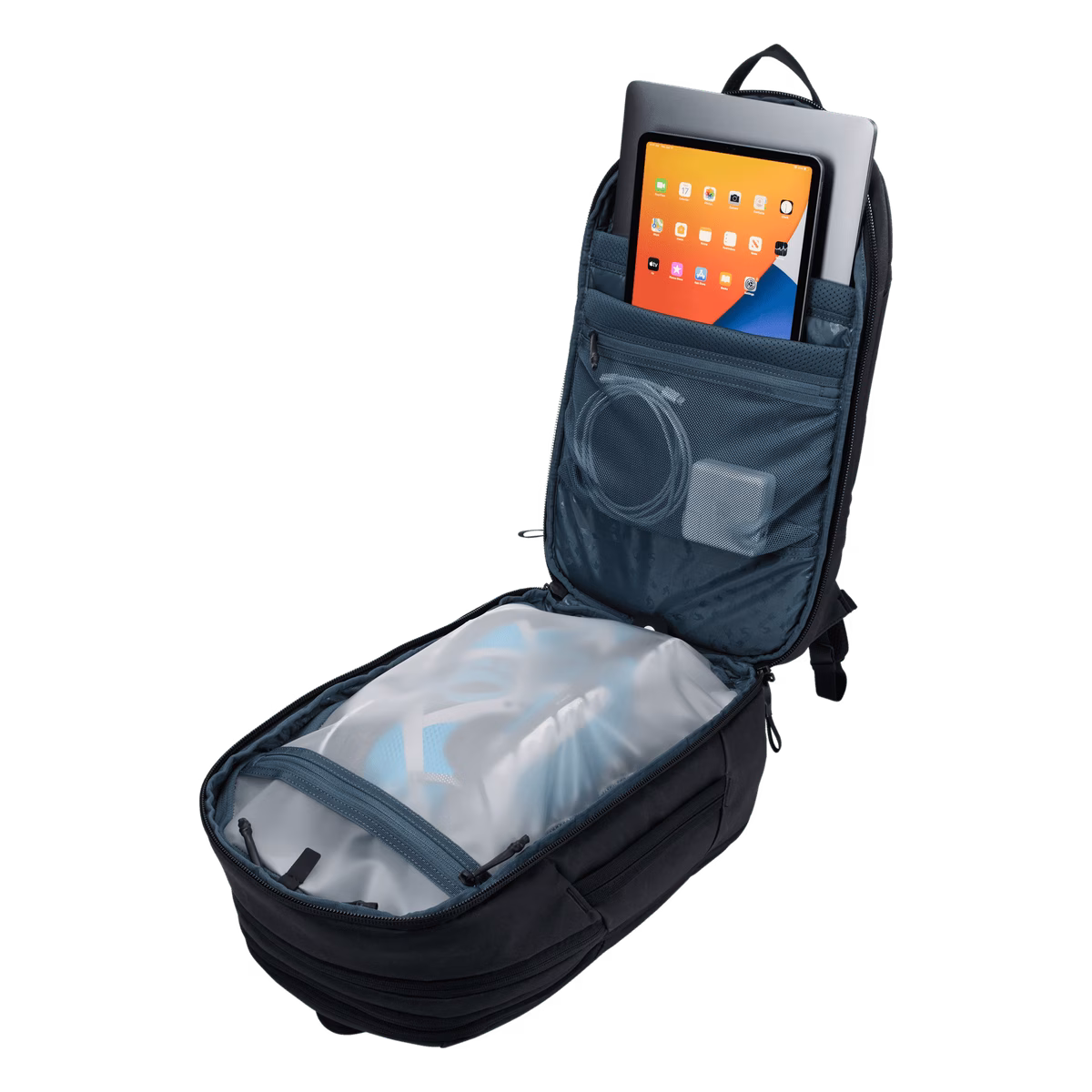 The bag’s back panel fully unzips and opens like a suitcase for easier packing. Inside, a stowable divider with TPU lining helps to organize your gear while keeping moisture, odor, or dirt from spreading to contents in the rest of the bag. The travel backpack also has dedicated areas for electronics storage and a water bottle pocket. The Thule Aion Sling (sold separately) can be used with this backpack as a hip belt to bear extra weight and provide quick access to vital items.